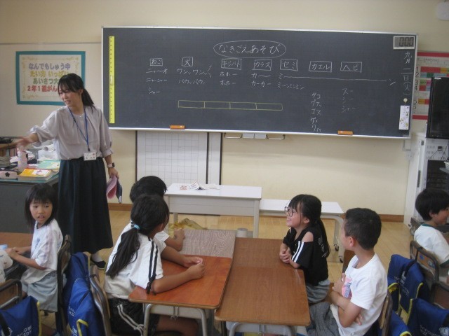 2年生の3時間目は、音楽科の学習でした。動物や鳥等の「なきごえあそび」をしていました。