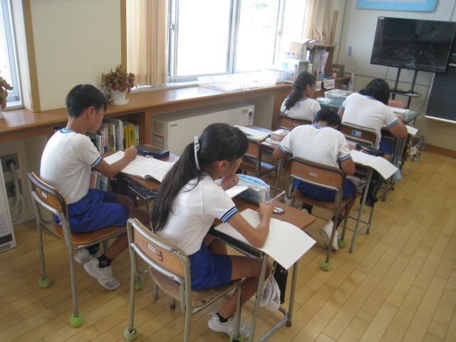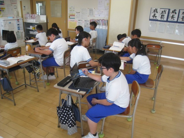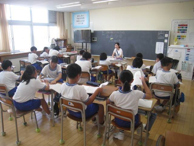 5年1組の3時間目は、算数科の学習でした。三角形の内角の和が180度になることを使って、いろいろな角度を考える問題を解いていました。