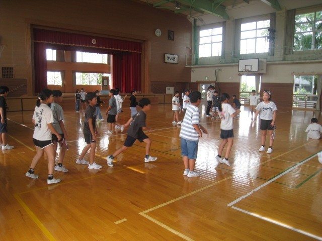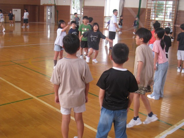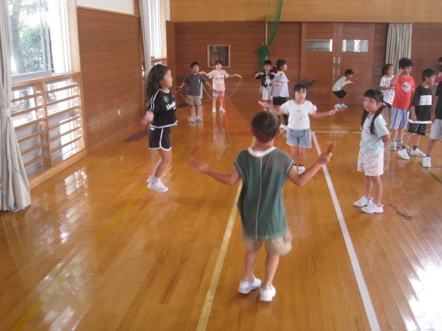 今日は、雨なので、体育館で縄跳びでした。1・3・5年生の様子です。