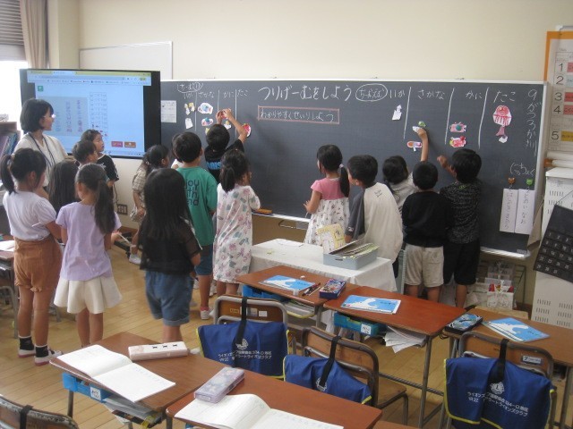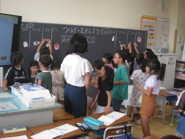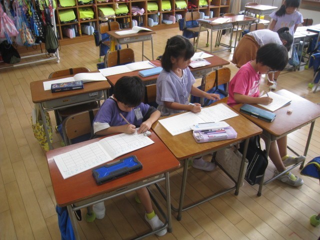1年生の3時間目は、算数科の学習でした。つりゲームをしながら記録をノートにかいていました。
