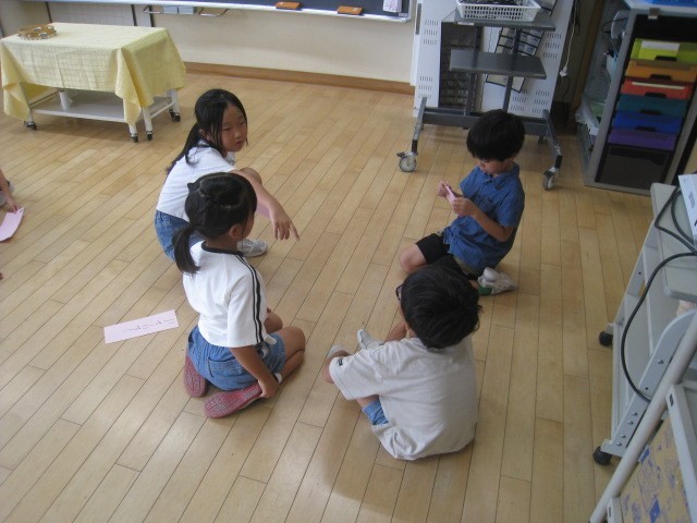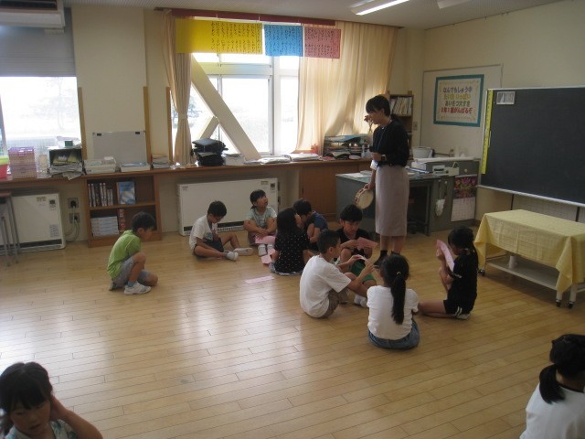 2年生の3時間目は、音楽科の学習でした。グループごとになき声を表現するところでした。