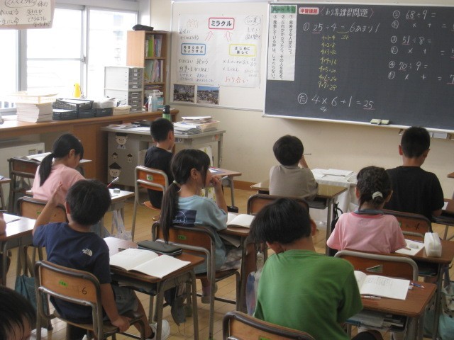 3年生の3時間目は、算数科の学習でした。あまりのあるわり算の練習をしていました。