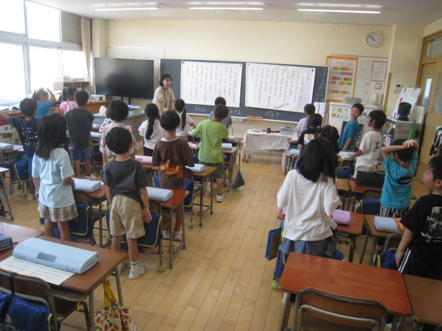 1年生の3時間目は、音楽科の学習でした。「ビリーブ」という曲の練習をしていました。