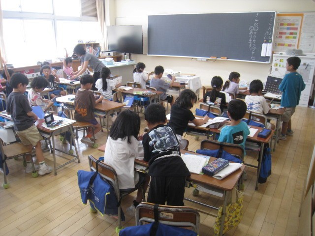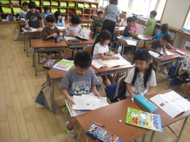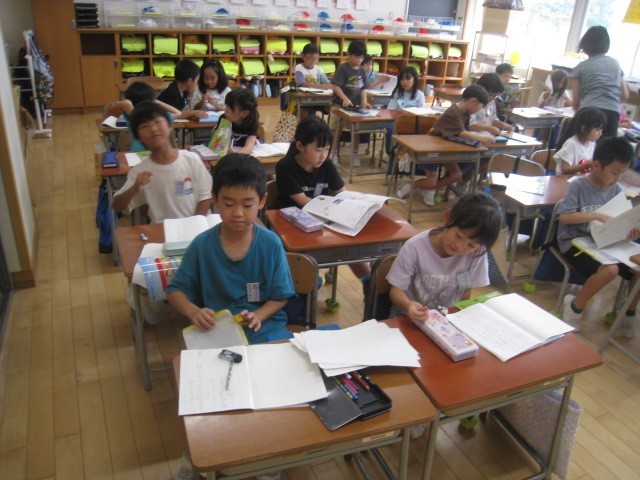 1年生は、5時間目の初めに連絡帳をかいていました。