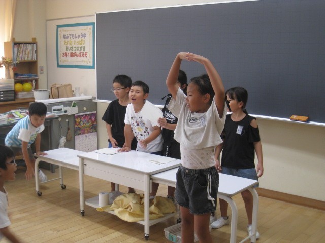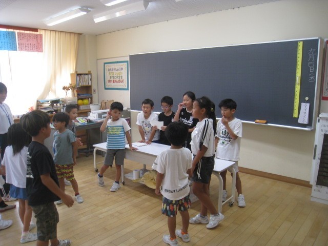2年生は、5時間目にクイズをしていました。「大きく育ちすぎたキュウリは、おいしくなくなる?〇か×か。」