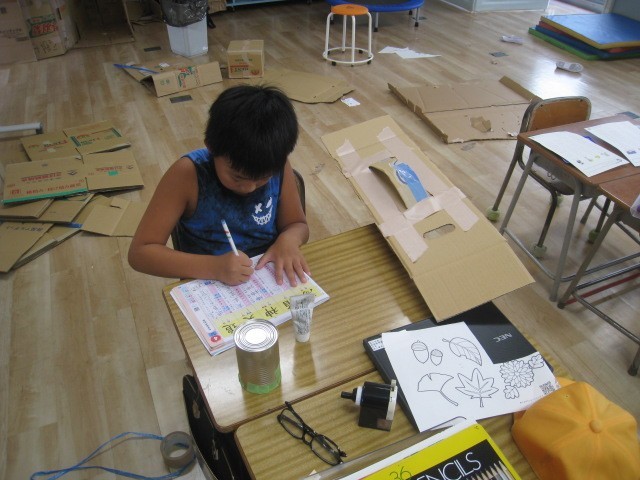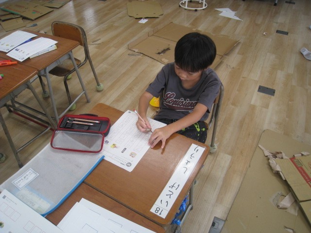 つばめ野級2組の2年生と5年生は、2時間目にカタカナや漢字のプリントを進めていました。