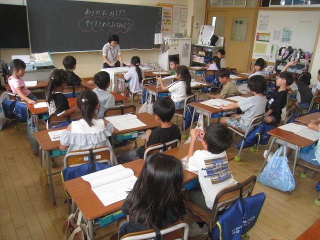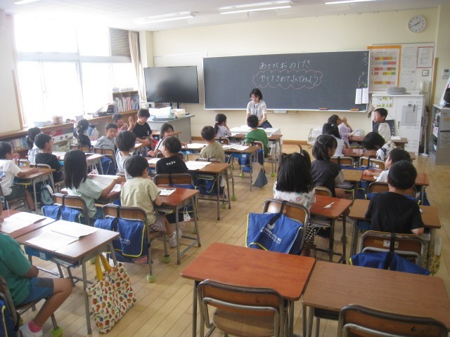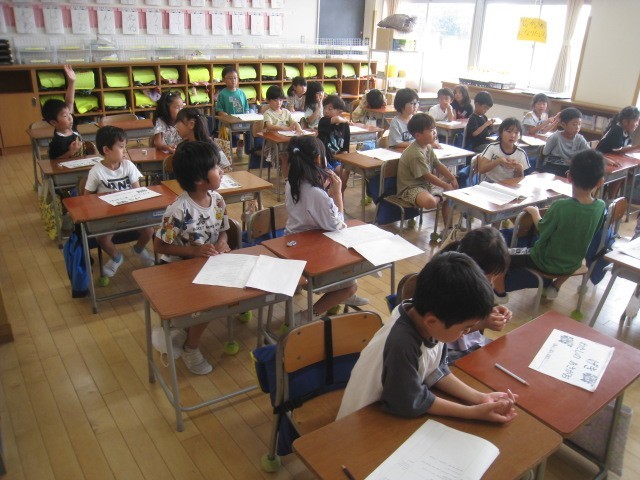 1年生の5時間目は、学習発表会の劇の役割の相談をしていました。台本を見ながら考えていました。