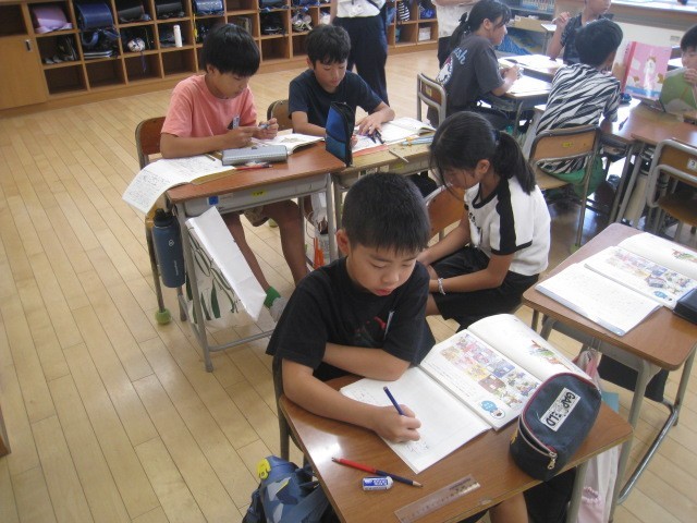 4年生の1時間目は、国語科の学習でした。「漢字のひろば」の学習で、接続語も使って文を考えていました。