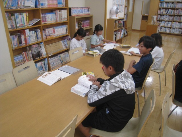 5年2組の1時間目は、国語科の学習でした。図書室で意味調べをしていました。