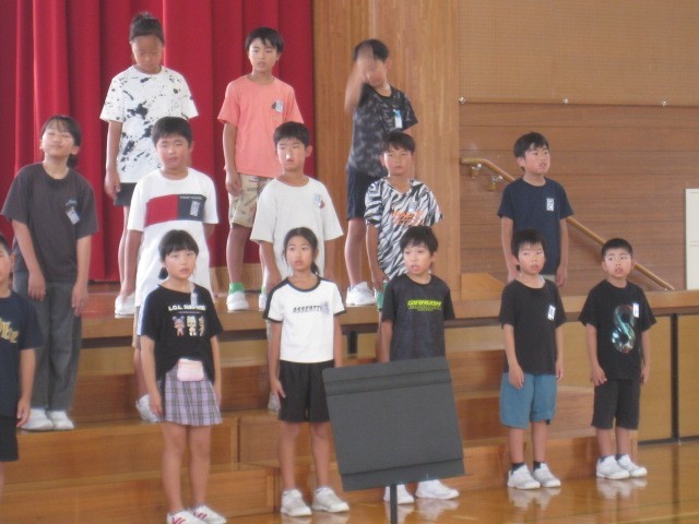 3・4年生は、3時間目に体育館で歌の練習をしていました。連合音楽会や学習発表会で歌う「世界がひとつになるまで」という曲の練習をしていました。