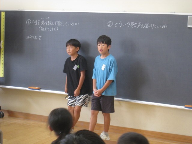 4年生は3時間目に、連合音楽会の曲をどんな気持ちで歌うのかについて、みんなで話し合っていました。