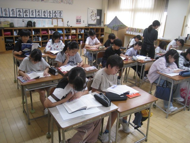 5年2組の1時間目は、国語科の学習でした。みんなで音読をしていました。