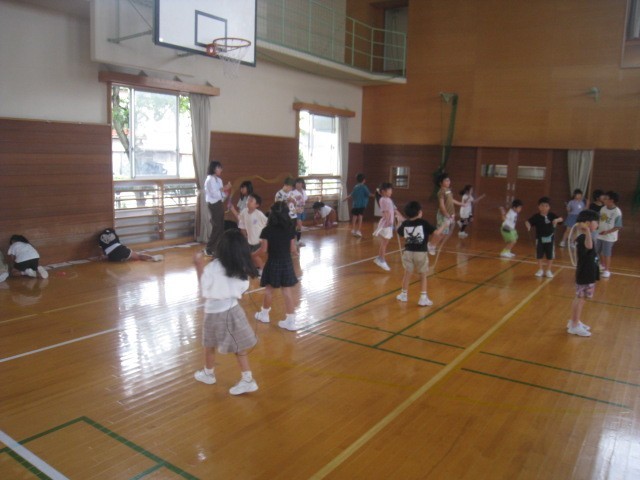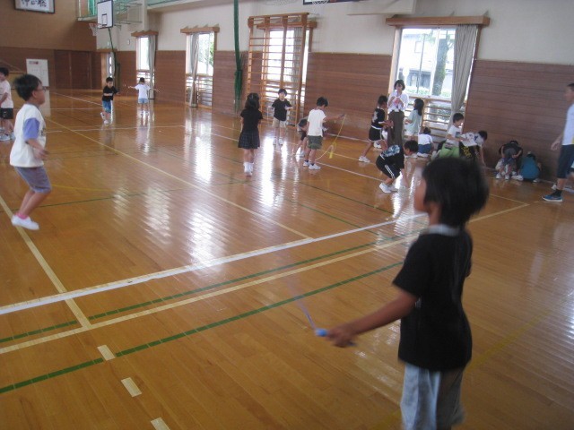 今日は天気が悪かったので、ぐんぐんタイムは体育館で縄跳びでした。1年生の様子です。