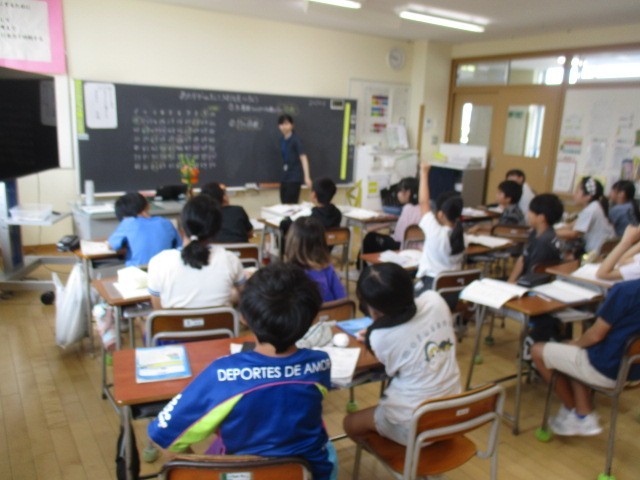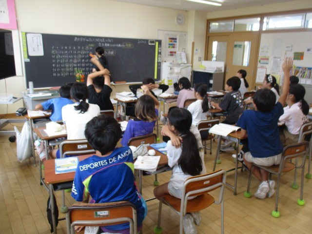 5年2組の2時間目は、算数科の学習でした。「倍数」に関する楽しい問題をみんなで考えていました。