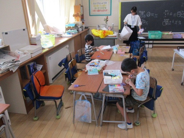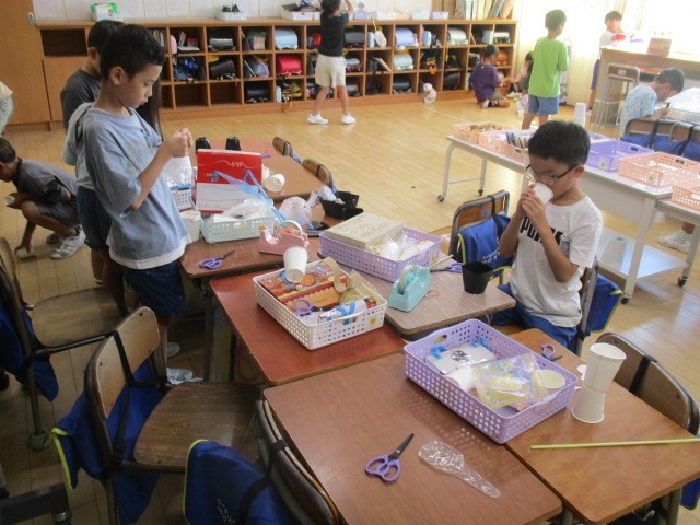 2年生の5時間目は、生活科の学習でした。「うごくおもちゃ」をつくっていました。