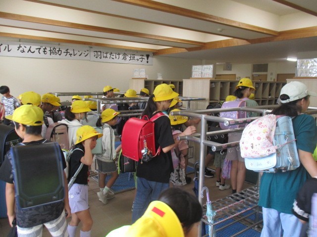 今朝の児童玄関の様子です。曇りです。子供たちの挨拶は元気いっぱいでした。