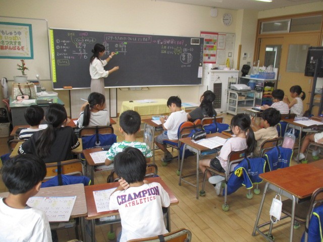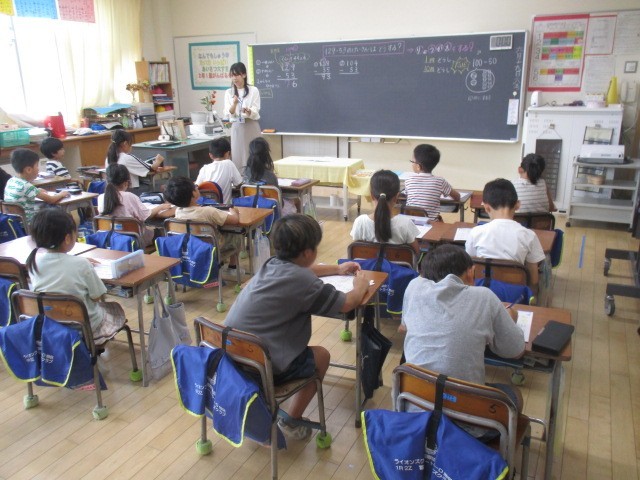 2年生の1時間目は、算数科の学習でした。104ー53のやり方を考えていました。