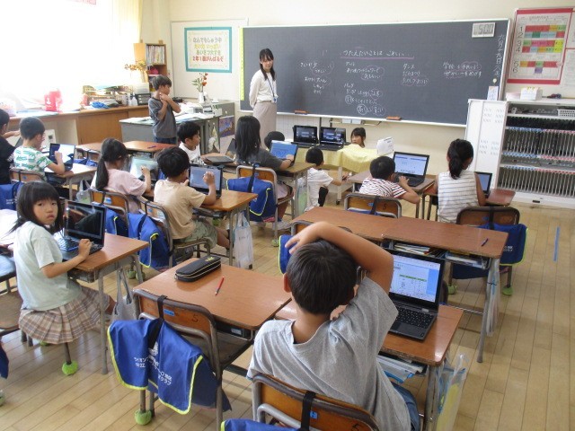 2年生は、5時間目にクロームブックを使っていました。練習等に使うBGMの準備を進めていました。