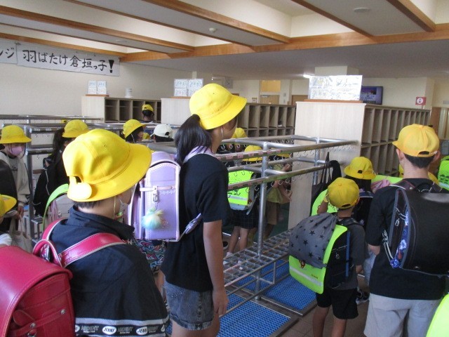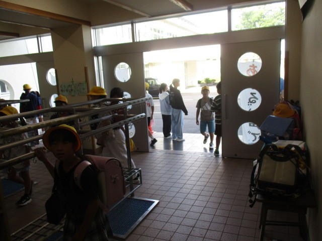 今朝の児童玄関の様子です。晴れた気持ちのよい朝です。だいぶん涼しくなってきました。子供たちの挨拶は、元気です。
