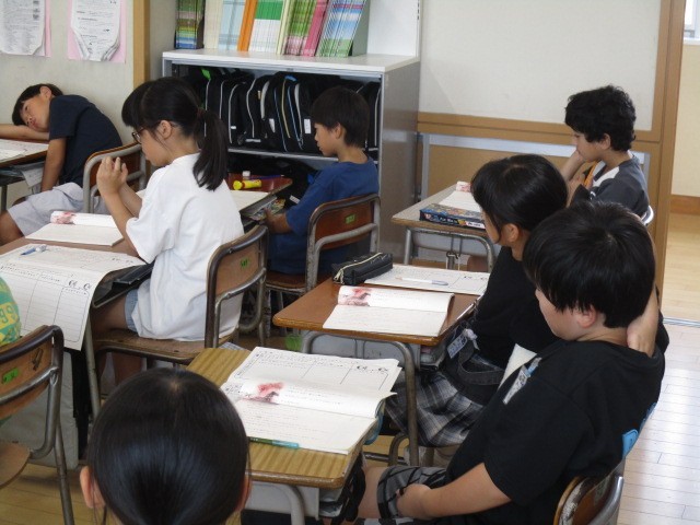 3年生の1時間目は、国語科の学習でした。「ちいちゃんのかげおくり」の朗読を聞いていました。