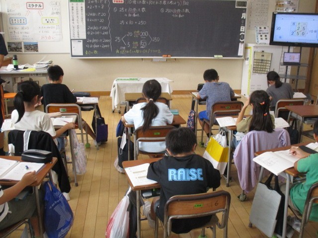 3年生の4時間目は、算数科の学習でした。10倍した数や10でわった数について考えていました。