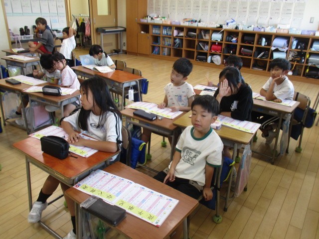 2年生の1時間目は、国語科の学習でした。「兄」と「弟」という漢字の練習をしていました。