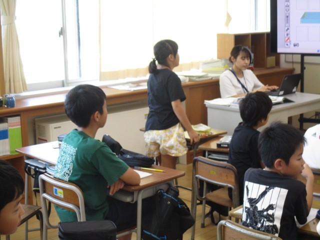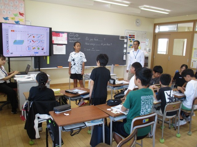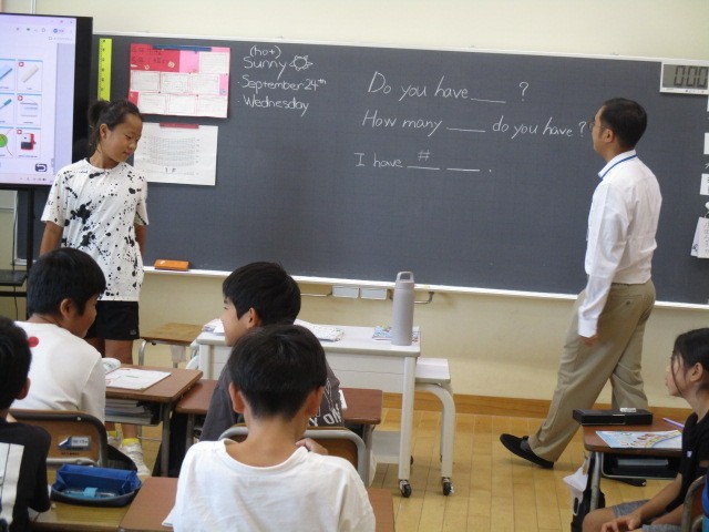 4年生の1時間目は、外国語活動の時間でした。「Do you have ~ ?」の言い方の練習をしていました。