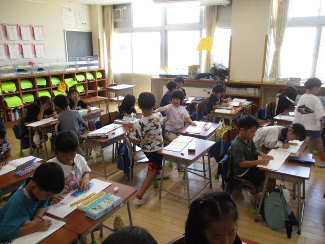 1年生の3時間目は、算数科の学習でした。今日も最初は、ブロックじゃんけんをするみたいです。