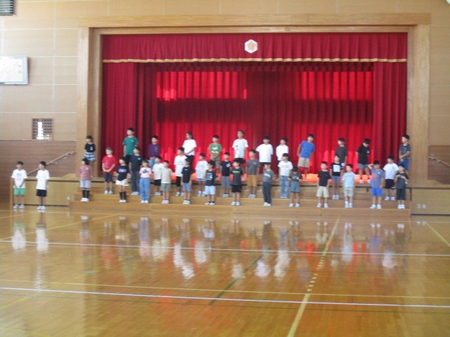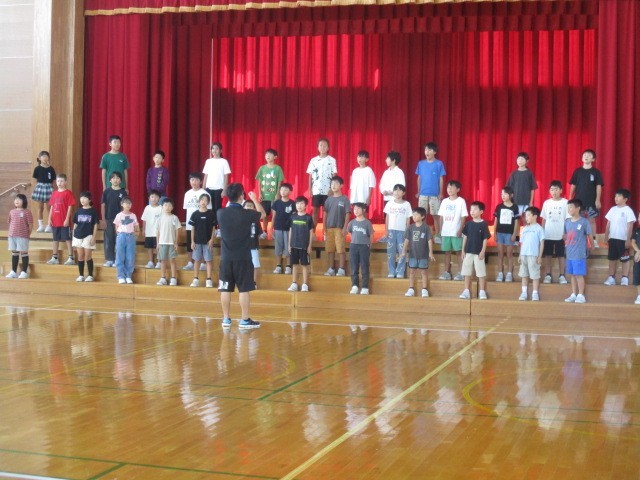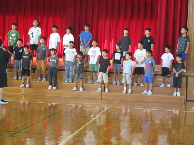 今日は、オーバードホールで区域連合音楽会があります。3・4年生は、学校出発前の最後の練習を体育館でしていました。