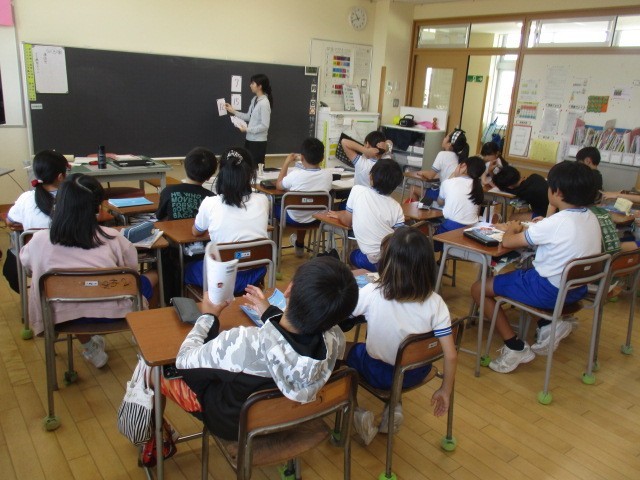 5年2組の3時間目は、算数科の学習でした。数字のカードを18枚使って、今から何かするみたいです。