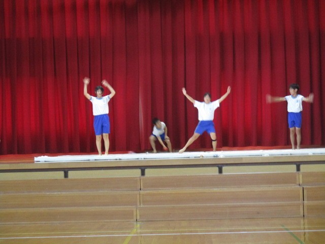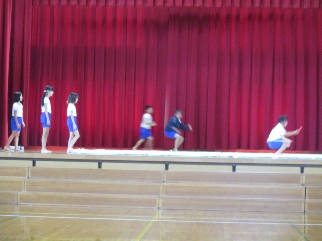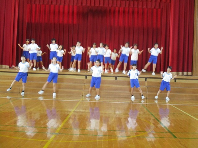 3時間目に5年生が学習発表会の練習を見せてくれました。色団ごとに自分たちで披露する技を考えたそうで、最後はみんなでダンスを見せてくれました。このあと、どんどん技の精度等があがっていくのが楽しみです。
