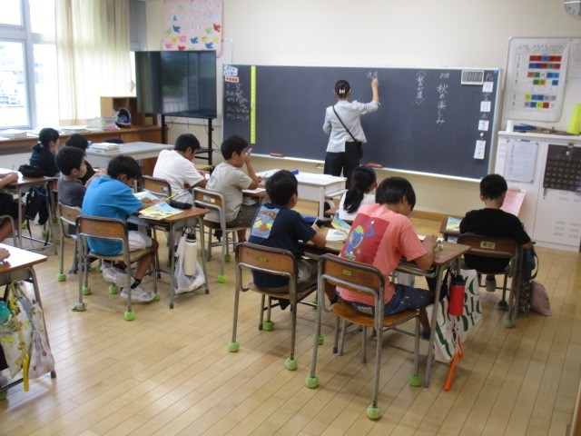 4年生の4時間目は、国語科の学習でした。秋に関係する言葉(食べ物、行事、植物等)をたくさん見付けていました。