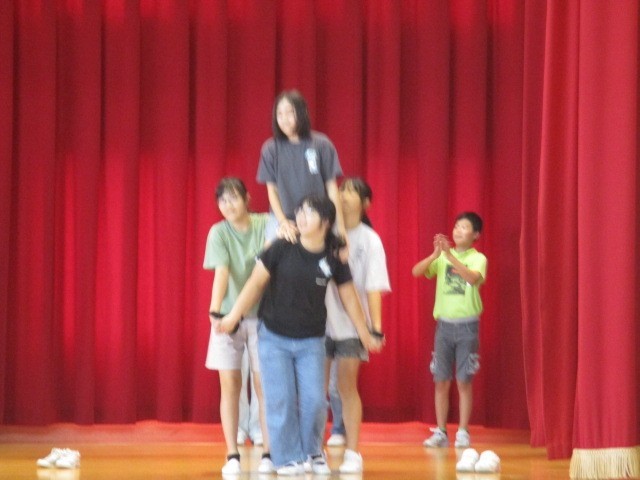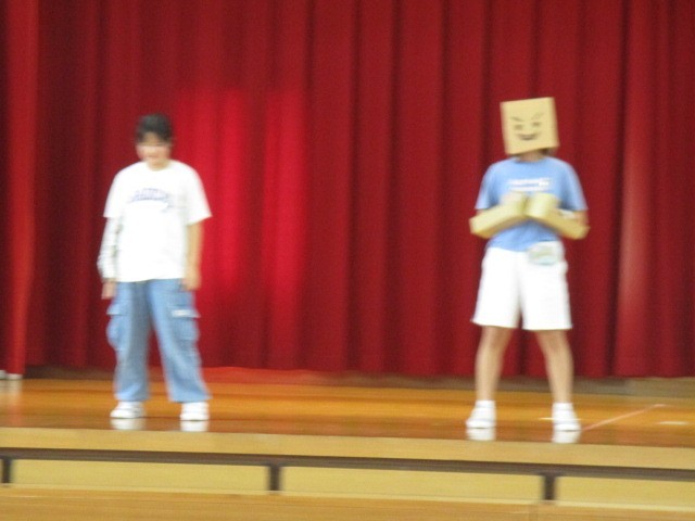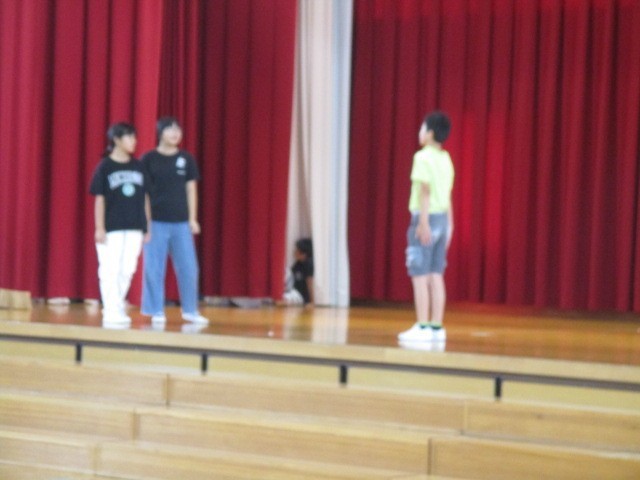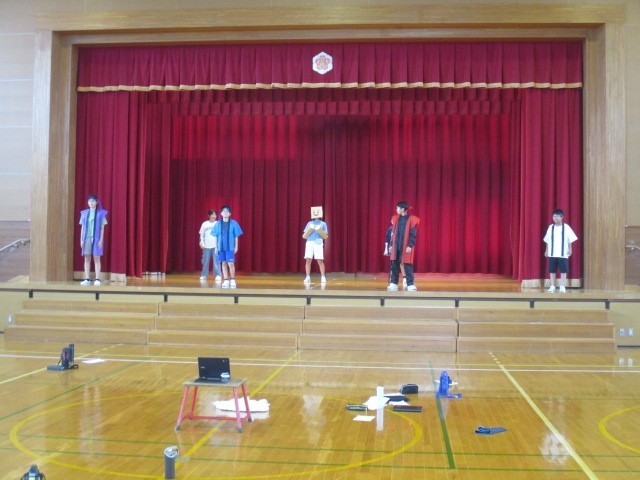 6年生は、5時間目に体育館で学習発表会の練習をしていました。だいぶん劇らしくなってきたみたいです。