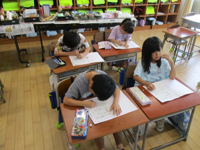 1年生は、2時間目にきらきらタイムの振り返りをしていました。今週は、きらきらパワーアップ週間だったので、振り返りもしっかりとしていました。