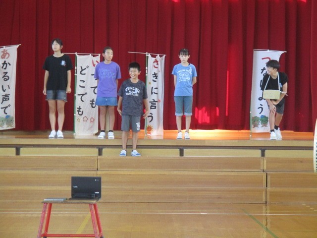 6年生が5時間目に体育館で学習発表会の練習を見せてくれました。昨日より演出がグレードアップしていました。本番が楽しみです。