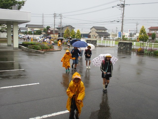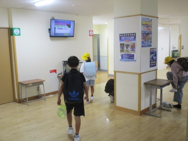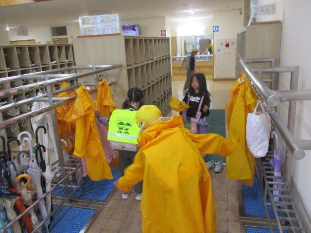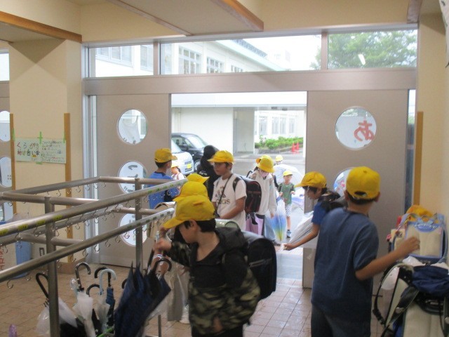 今朝の児童玄関の様子です。雨の朝です。雨ですが、大きな声で挨拶してくれる子供たちが何人もいました。