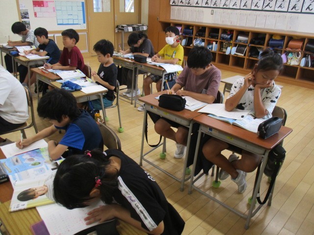 4年生の3時間目は、理科の学習でした。水蒸気についての「たしかめよう」の問題を考えていました。