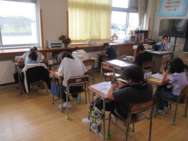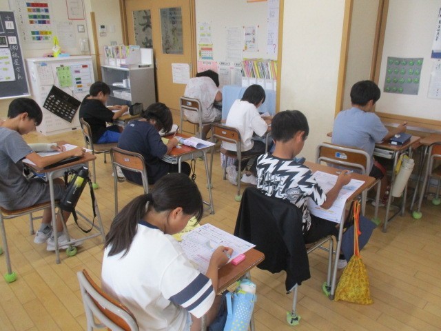 5年1組の5時間目は、社会科の学習でした。水産業のところのテストをしていました。