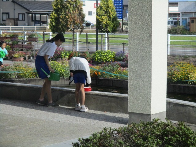池のいきものにエサをありがとうございます。