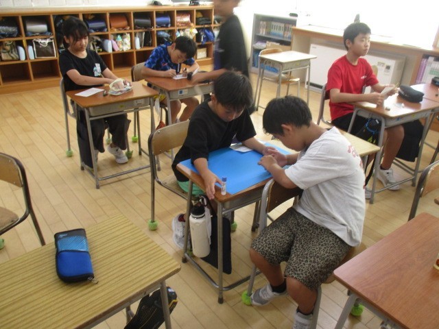 4年生は、5時間目にお手紙をかいていました。今日、予行練習で他学年の発表を見て、気付いたこと等をお手紙にしてかいていました。