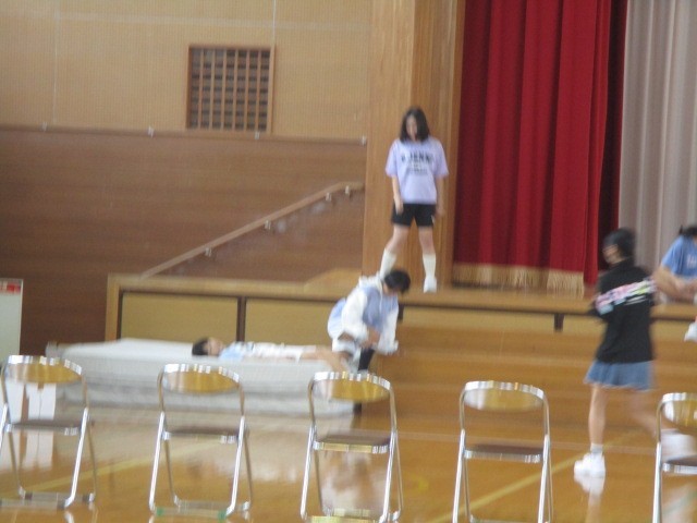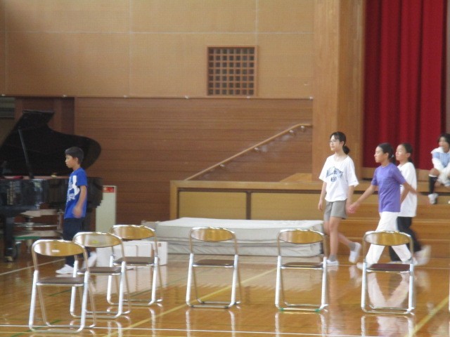 6年生は、5時間目に学習発表会の練習をしていました。練習がはやく終わったので、ちょっと休憩することになりました。このあと6時間目は、学習発表会の準備を5年生と一緒にします。