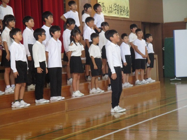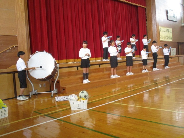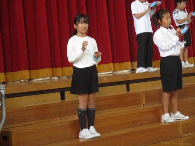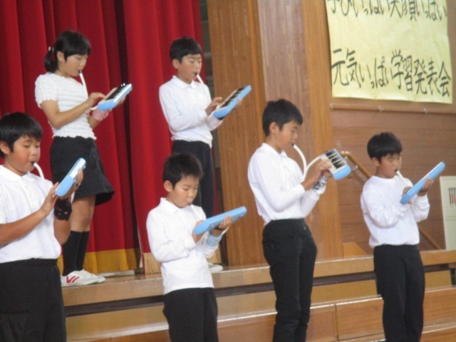 4年生の発表の様子です。自分が好きな楽器や演奏パートを選んで合奏に挑戦したそうです。一人一人がとてもよく頑張っていました。