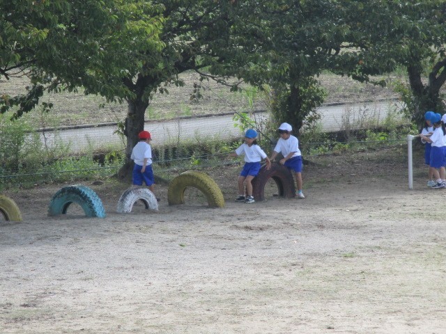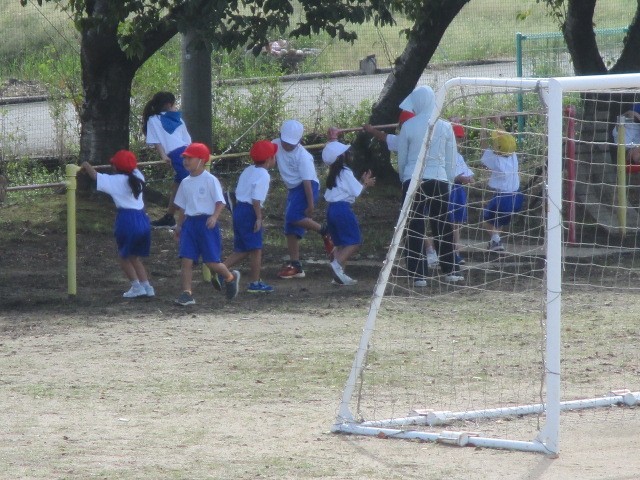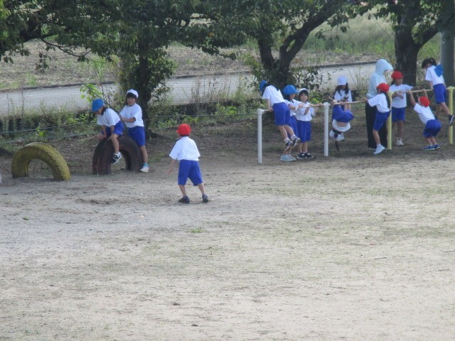 1年生の3時間目は、体育科の学習でした。グラウンドで鉄棒をしていました。