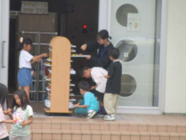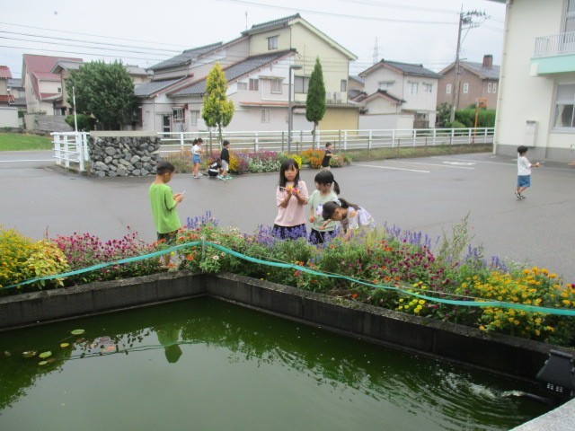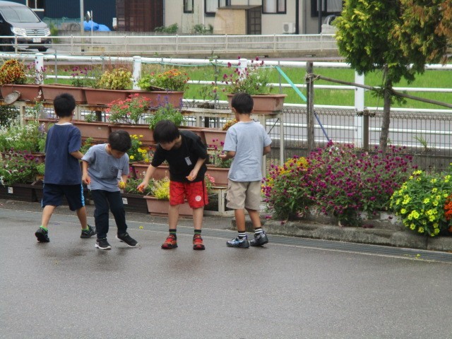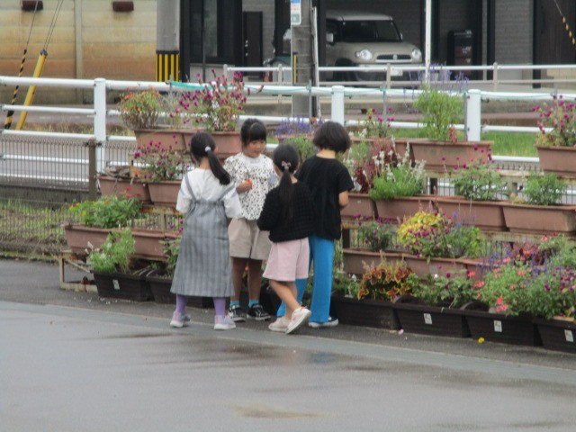 1年生は、1時間目にプランターの花の周りにいました。花びらを集めているみたいです。何に使うのだろう…。