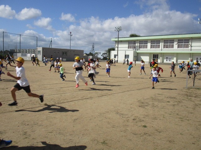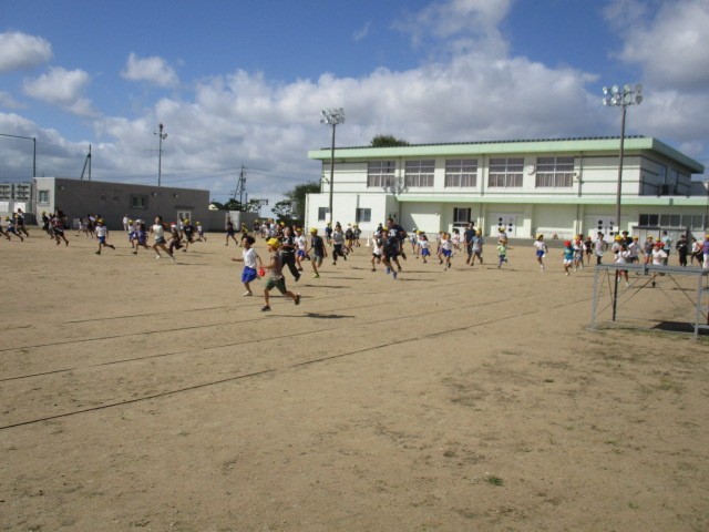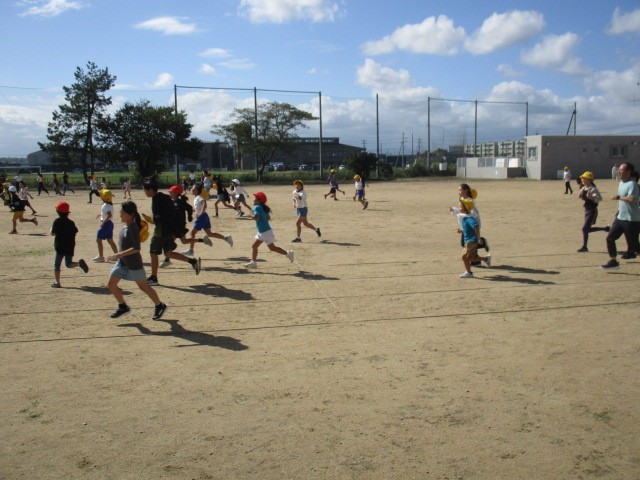 今日のぐんぐんタイムも最後は、みんなで走りました。いつもと反対側から走りました。