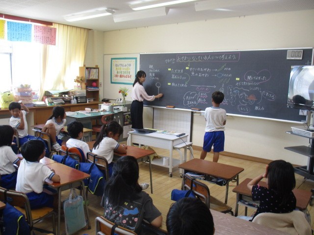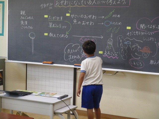 2年生は、3時間目にお世話になっている人のことを話し合っていました。