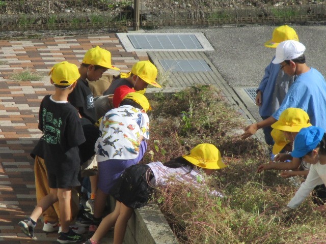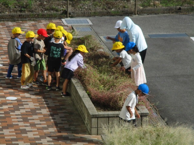 1年生は、1時間目に北斗子供会側の花壇にいました。何やら探しているみたいでした。