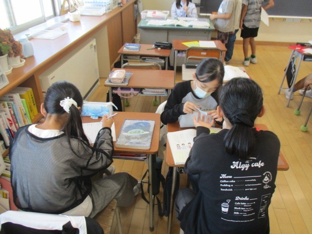 5年1組の1時間目は、国語科の学習でした。付箋にメモをかいていました。