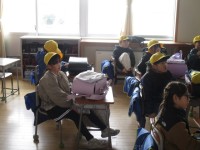 3・4年生の3時間目は、合同で体育科の学習でした。体育館でマット運動をしていました。前転の様子です。