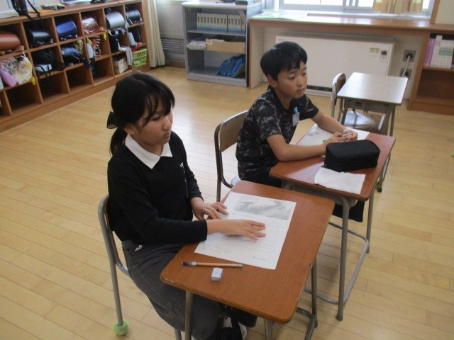 4年生の5時間目は、国語科の学習でした。「ごんぎつね」の書き込みプリントを進めていました。